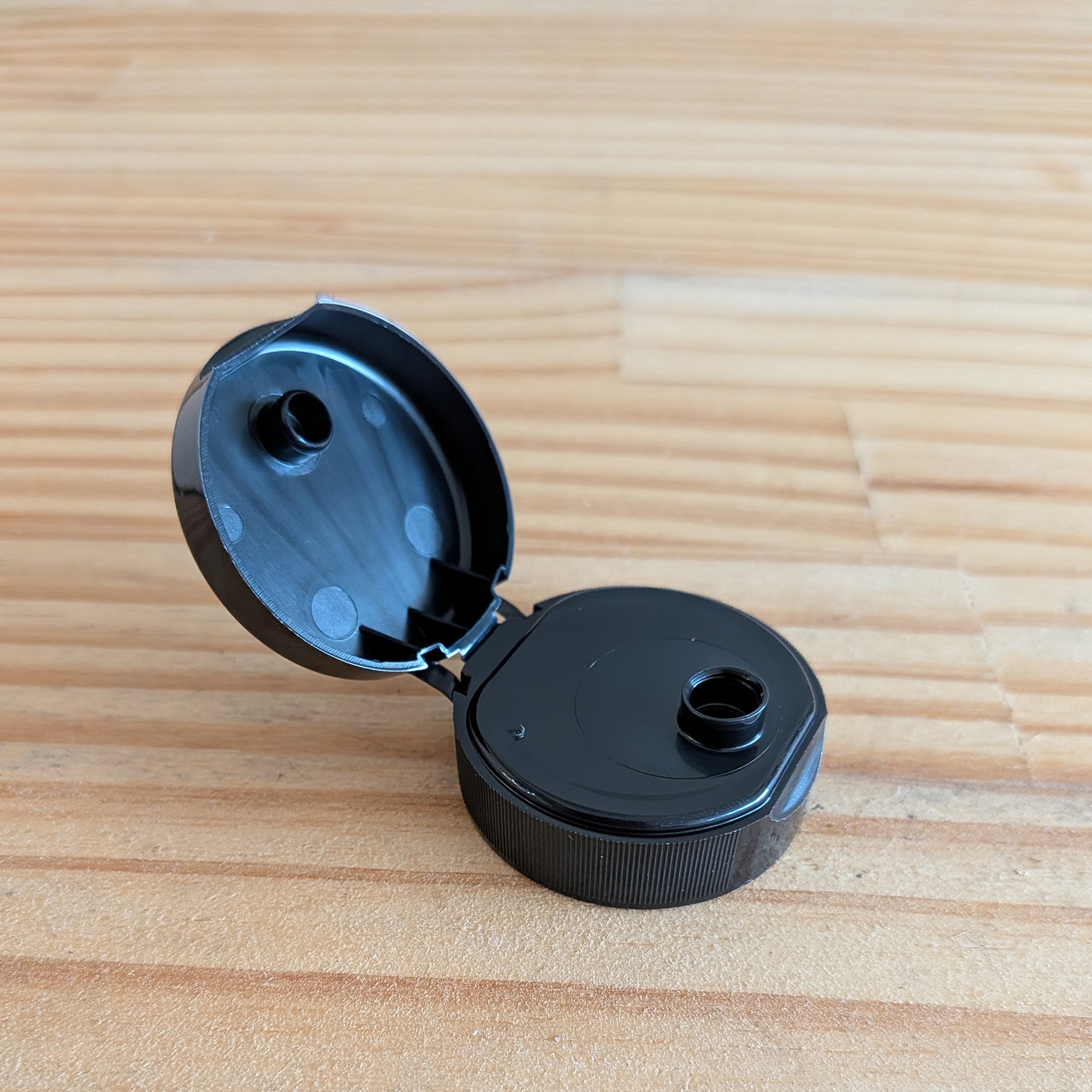 This 38mm black snap top cap comes with a Foamseal PS-21 pressure sensitive liner. This cap features a snap closure and a 6.35mm (0.25") orifice for controlled dispensing of liquid products. Snap top caps are popular closures for body care products, but also appropriate for many applications. This foam pressure sensitive liner creates an actual seal which provides an extra level of protection.