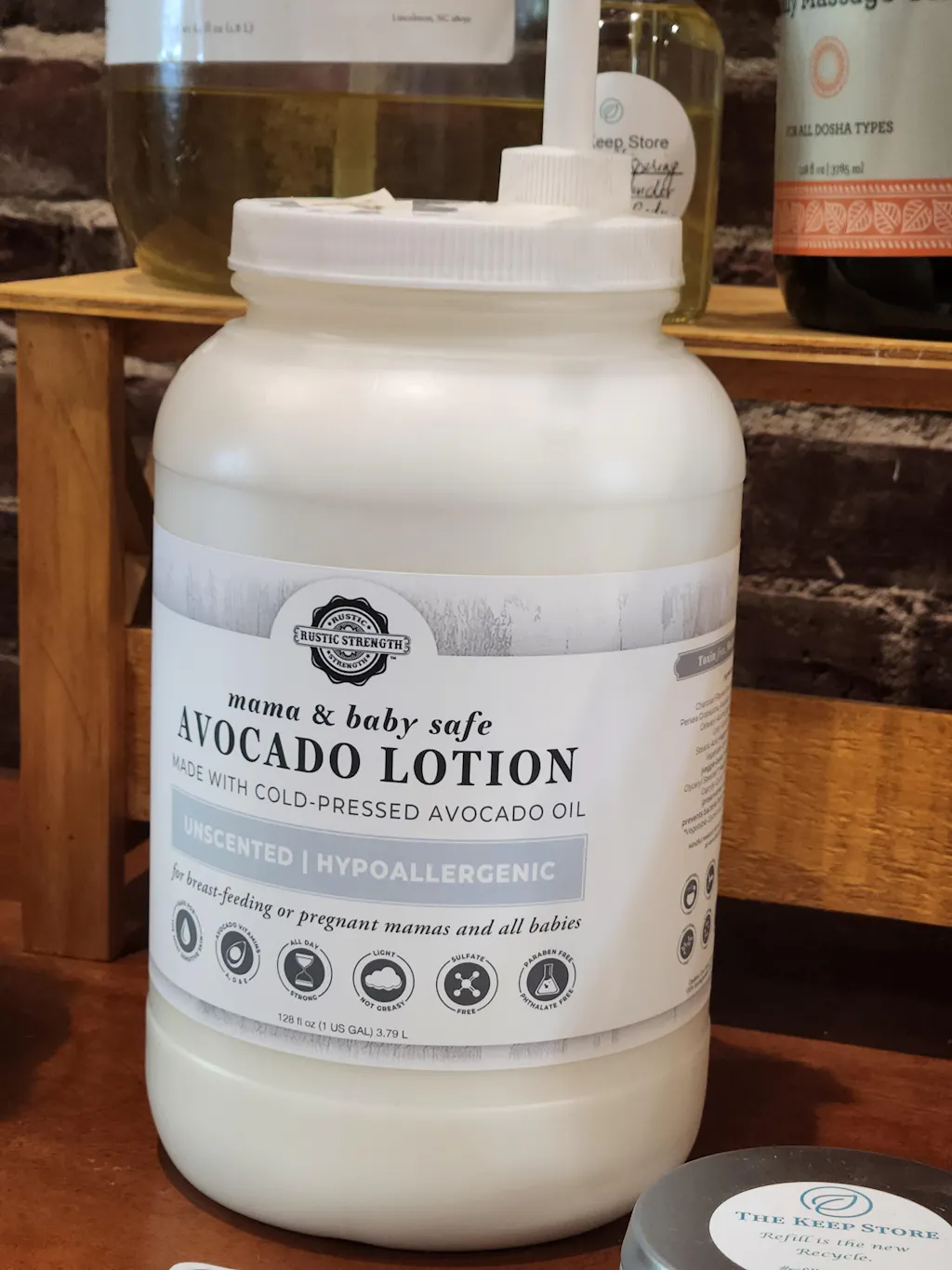 Mama + Baby Safe | Rustic Strength Avocado Lotion is made with high-purity and concentrated active plant-based ingredients and is less likely to irritate even the most sensitive skin. It is safe for pregnant or breastfeeding mamas as well as babies when no scents are added. That's why we called this line "Mama + Baby Safe"