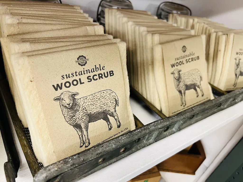 Why Wool | Coarse wool is an ideal sponge alternative for many reasons. It repels odors and has antimicrobial & anti-fungal qualities, preventing it from getting smelly. Its moisture-wicking ability allows for quick drying. Since coarse wool is felted, it becomes even more scrubby with use. Wool is a durable, biodegradable natural fiber that outlasts synthetic fibers and does not contribute to the microplastic crisis. Most users report 6 months to a year per sponge.